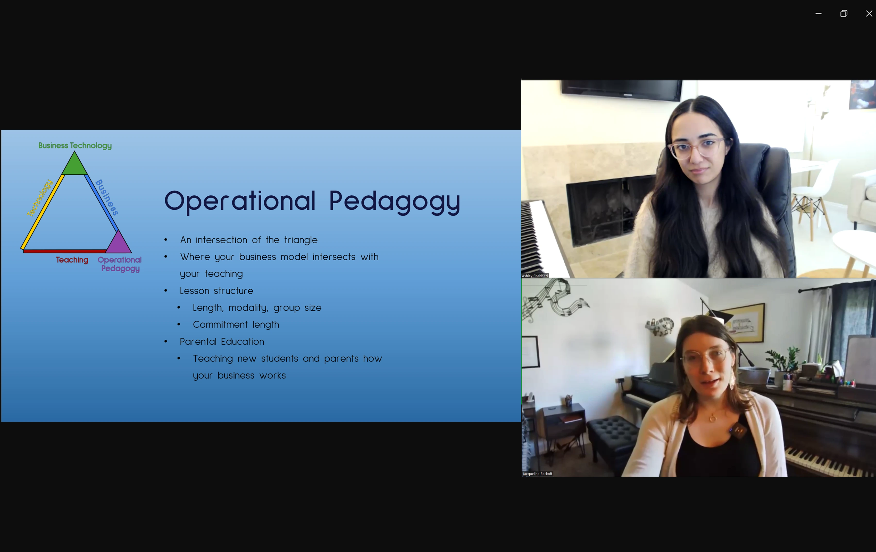 "In a short amount of time, Jacqueline's guidance and expertise transformed my piano studio... Her insights on professionalism, crafting a comprehensive studio policy, and designing an effective website took my practice to the next level. Perhaps the most significant impact was on my confidence... I gained more business and a newfound sense of purpose... I can't recommend Jacqueline enough for being so involved and helping me achieve success."
